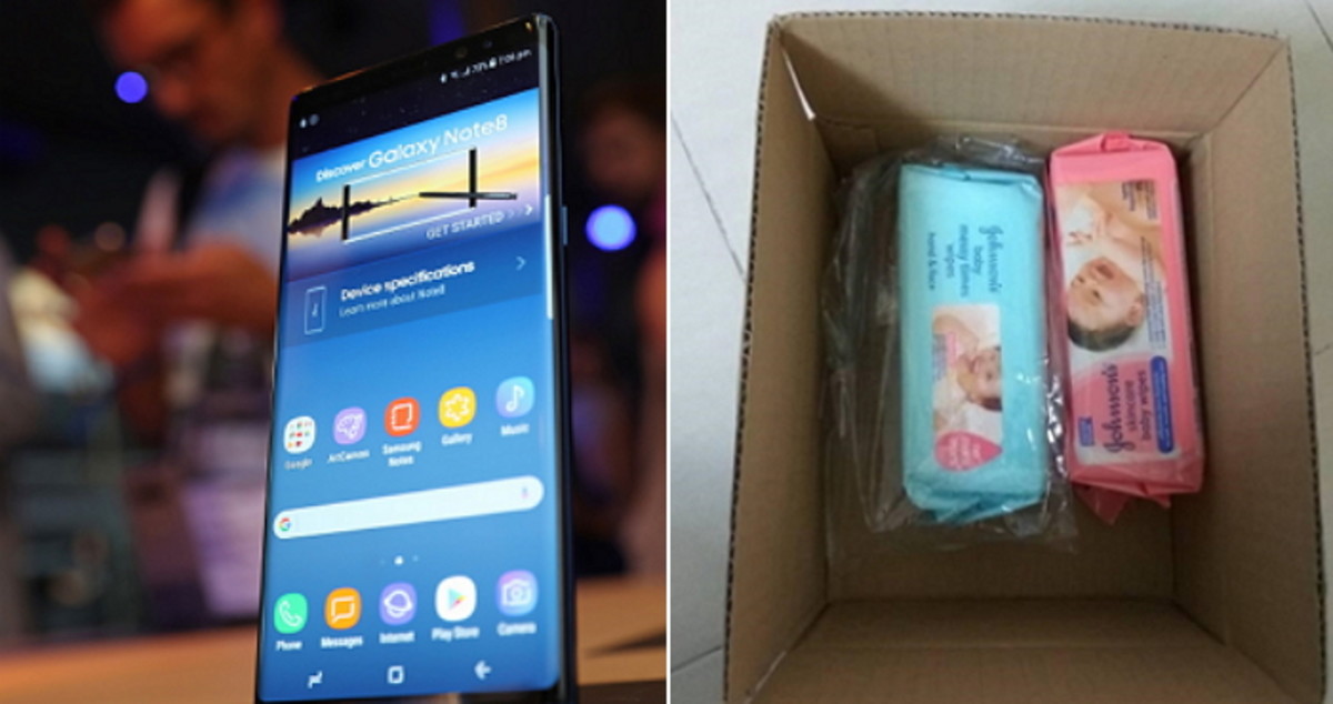 그러나 상자 안에는 그가 구매한 휴대폰이 아닌 아기용 물티슈 두 통이 들어가 있었다.