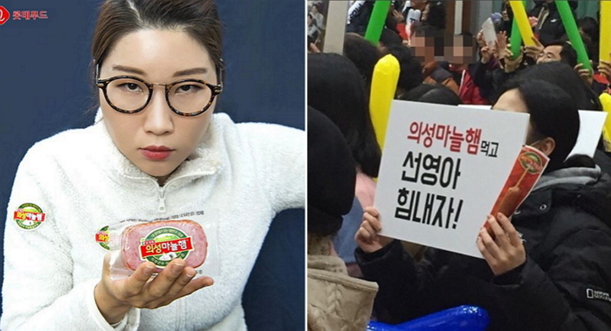 롯데푸드는 지난 23일 공식 인스타그램 계정을 통해 자사 제품인 '의성마늘햄' 광고 사진을 올렸다.