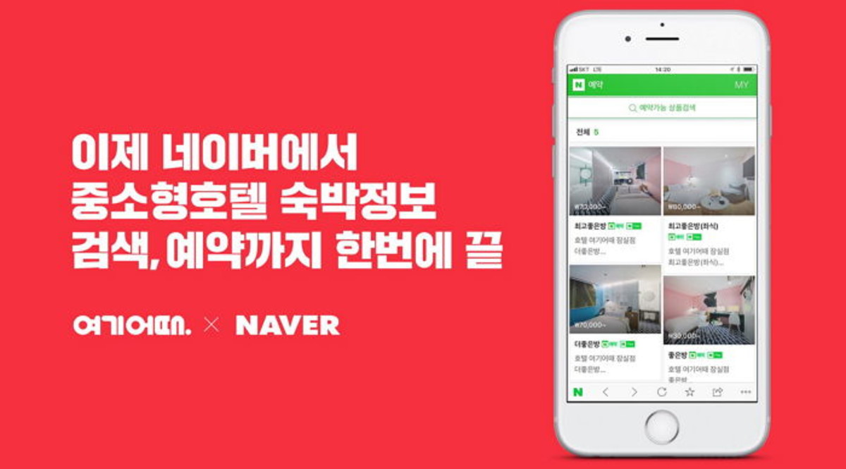 여기어때는 네이버 측에 객실 위치와 가격, 내외부 사진 등 중소형호텔의 주요 정보와 예약상품을 제공한다.
