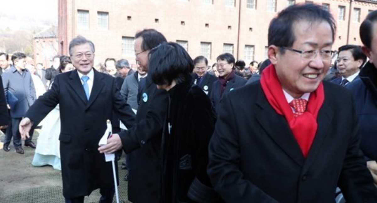 그런데 식이 모두 끝나고 퇴장할 때가 되자 홍 대표는 돌발 행동을 보였다. 문 대통령이 다가오는 도중 다급히 반대 방향으로 나가 버린 것이다.