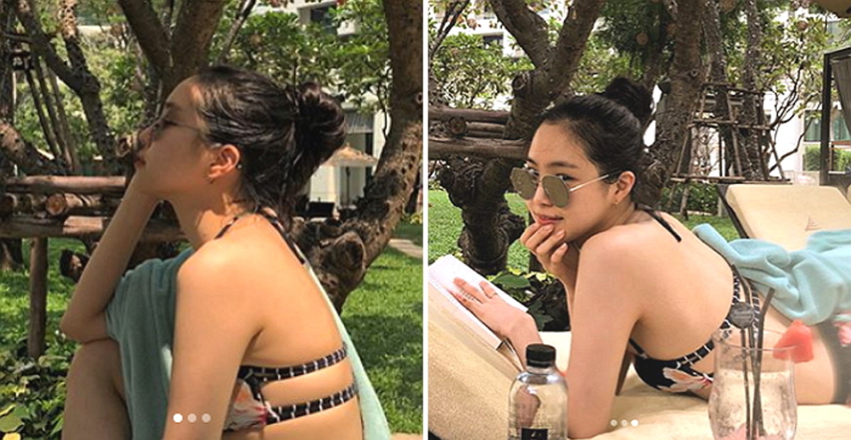 공개된 사진 속에는 꽃무늬 비키니를 입은 손나은이 선베드에 누워 책을 읽는 모습이 담겼다.