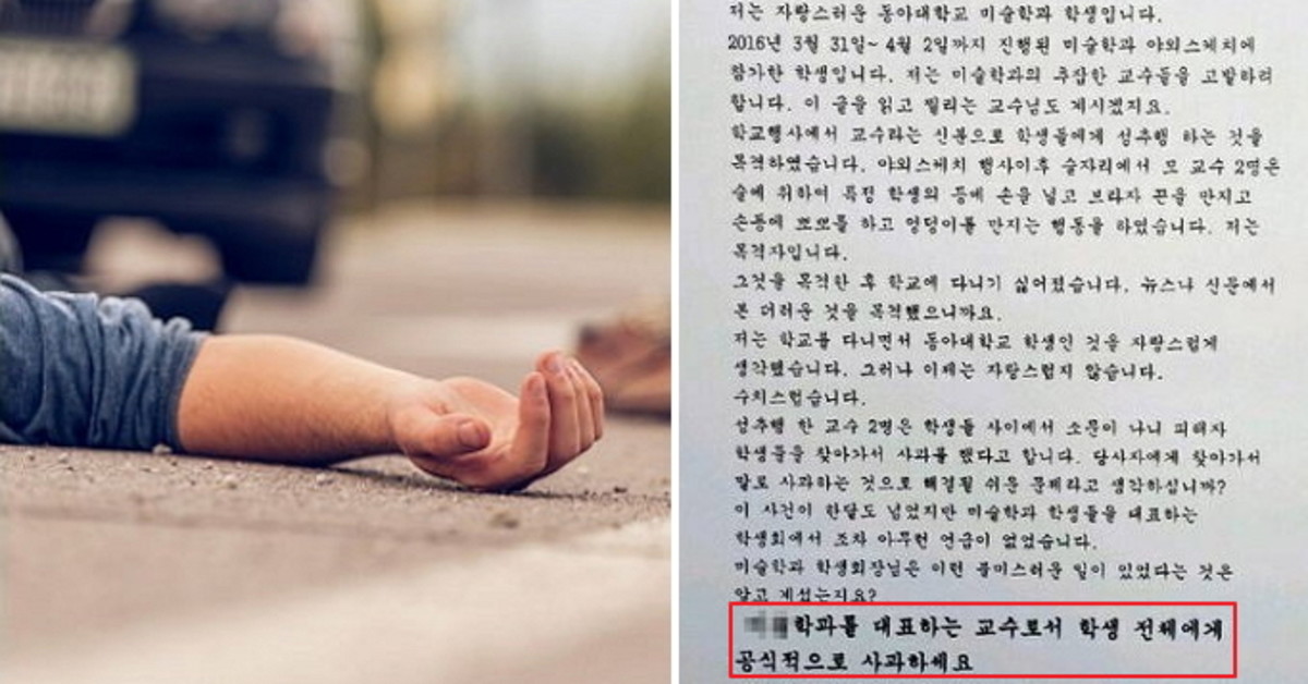 한편 당시 실제 성추행을 한 것으로 알려진 A 교수는 교수직에서 파면돼 현재 파면 불복 소송을 진행하고 있다.