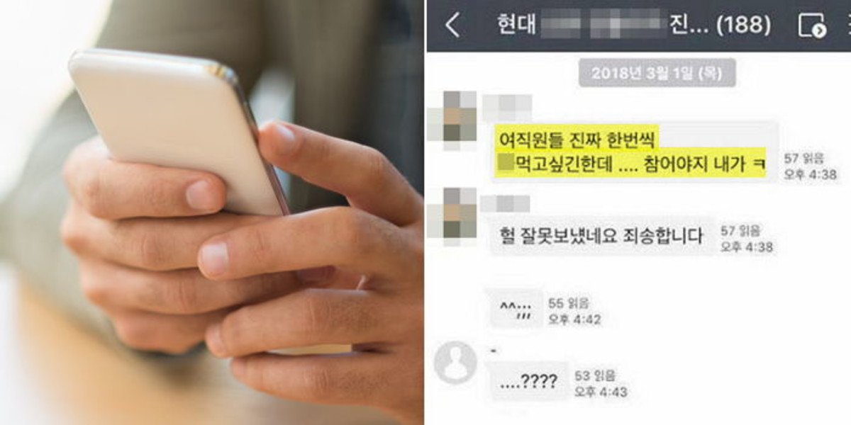 지난 1일 직원 A씨는 이 채팅방에 "여직원들 진짜 한 번씩 X먹고 싶긴 한데...참어야지 내가"라는 메시지를 보냈다.