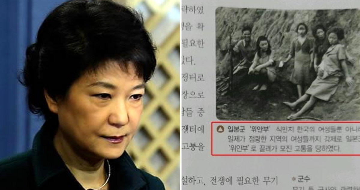과거 박근혜 정권 교과서는 '강제로 전쟁터에 끌려간 여성들은 일본군에게 많은 고통을 당했다'고 서술했을 뿐 '위안부'라는 명칭은 사용하지 않았다.