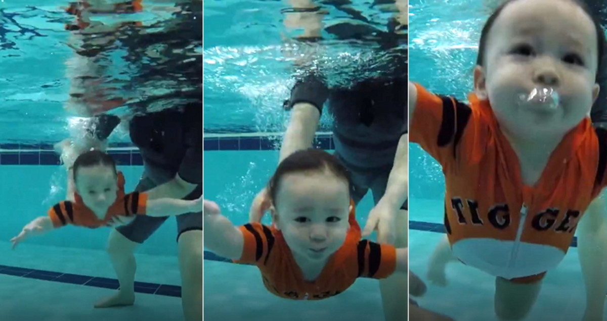 물에 적응을 잘하는 윌리엄을 본 수영강사와 샘 아빠는 이어 잠영에 도전했다. 간혹 어린아이들의 경우 물속을 엄마 품 안에 있는 것처럼 편안하게 느낀다고 알려져 있다.