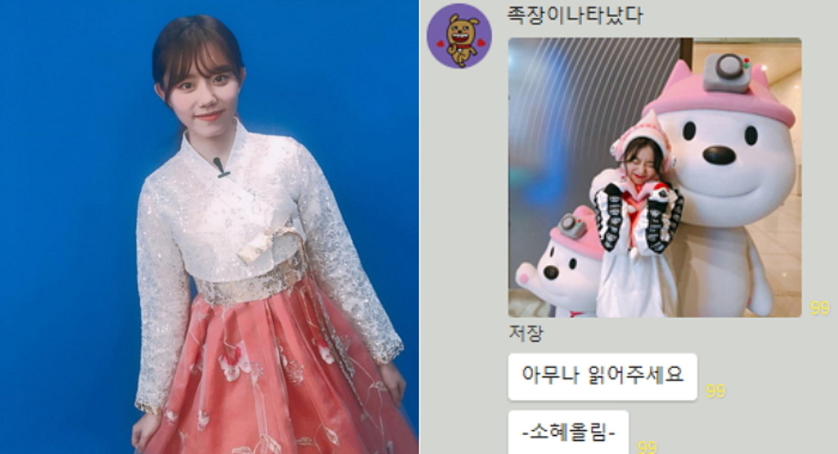 '족장이 나타났다'라는 닉네임을 사용한 김소혜는 이날 사진 한 장을 올린 후 "아무나 읽어주세요. 소혜 올림"이라고 부탁했다.
