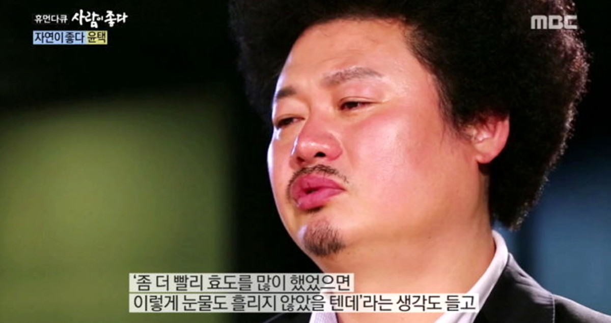 당시 MBC '휴먼다큐-사람이 좋다'에서 윤택은 침대에 누워있는 어머니에게 자신이 누구냐고 물어봤지만 아무 답도 돌아오지 않자 오열했다.
