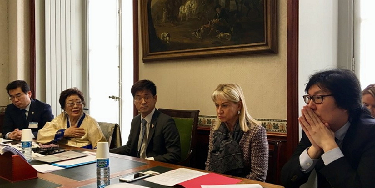 지난 8일(현지 시간) 이용수 할머니는 세계여성의 날을 맞아 파리 시내의 하원의사당을 방문했다.