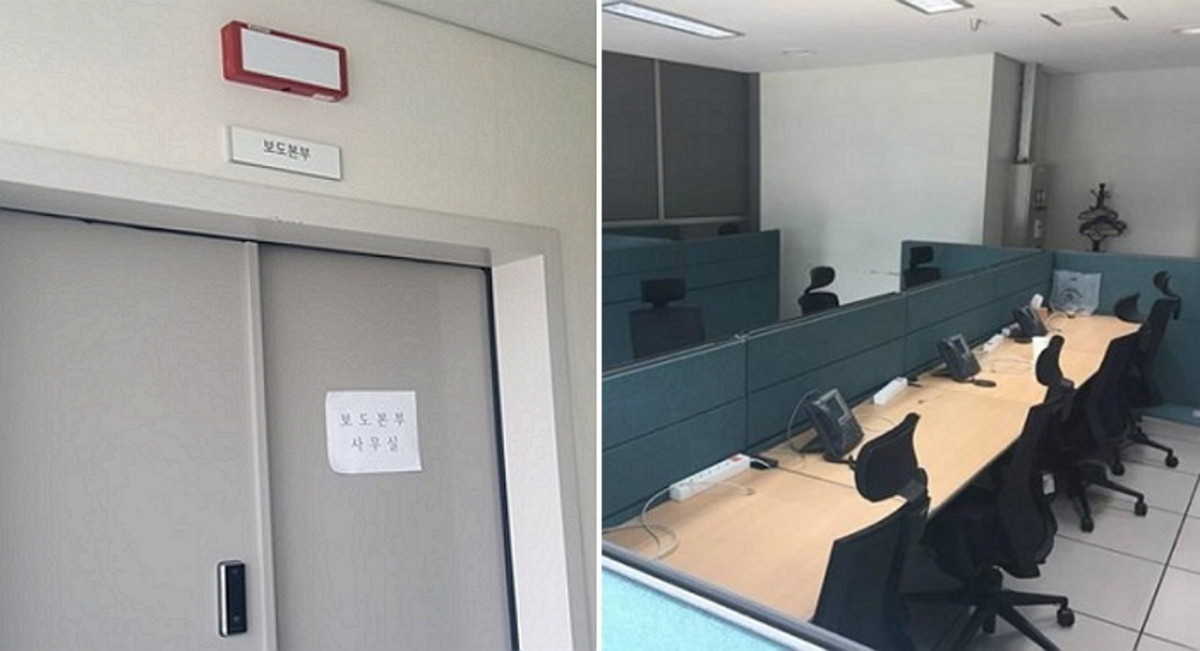 다만 임시로 만든 듯한 사무실에는 '보도본부 사무실'이라고 인쇄된 종이가 붙어있었고 컴퓨터 없이 전화와 TV, 에어컨 등이 설치돼있었다.