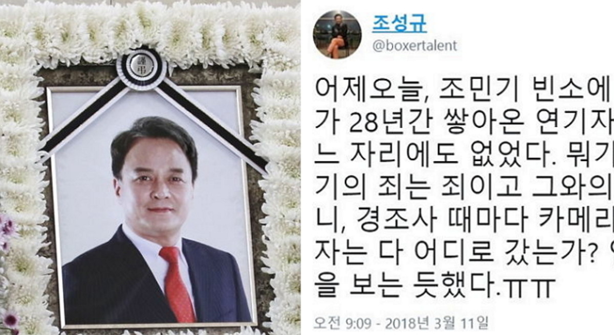 고(故) 조민기 빈소에 다녀온 조성규는 조문을 오지 않는 연예계 동료들에 대한 씁쓸한 마음을 드러냈다.