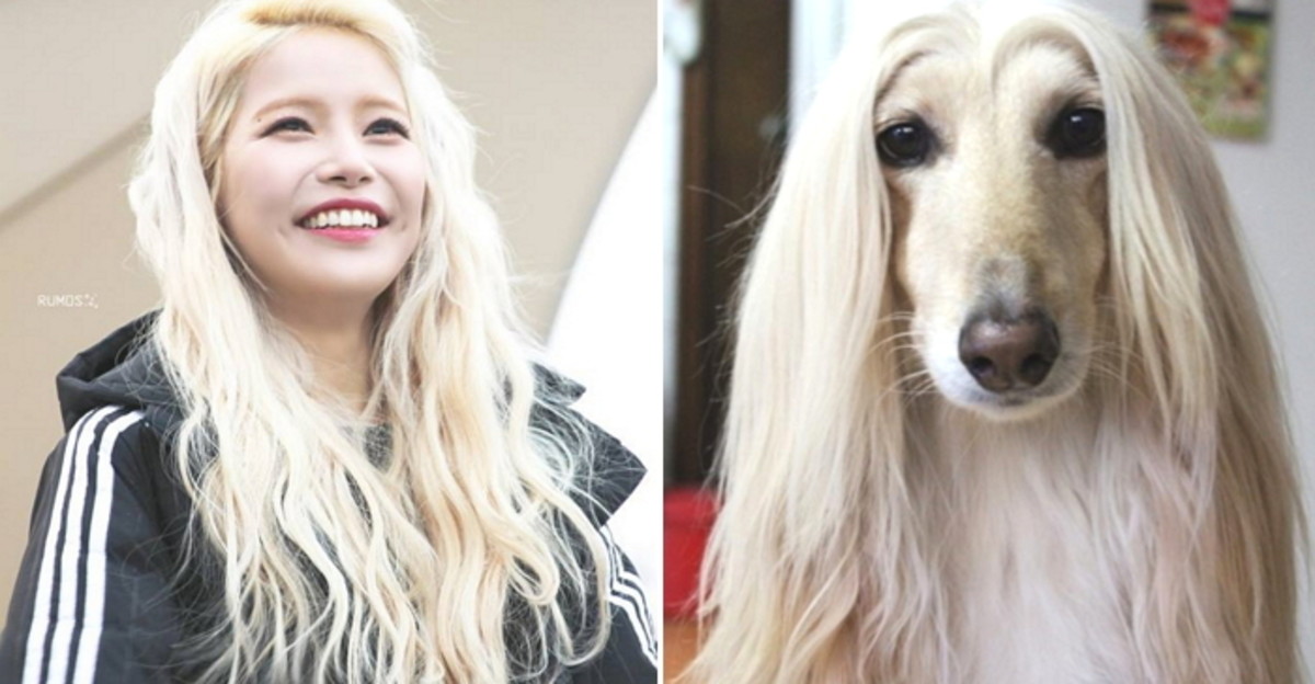 솔라는 금발의 긴 귀가 인상적인 아프간하운드 사진을 본 뒤, 정말 자신과 닮았냐는 듯 팬들을 향해 사진을 들어보였다.