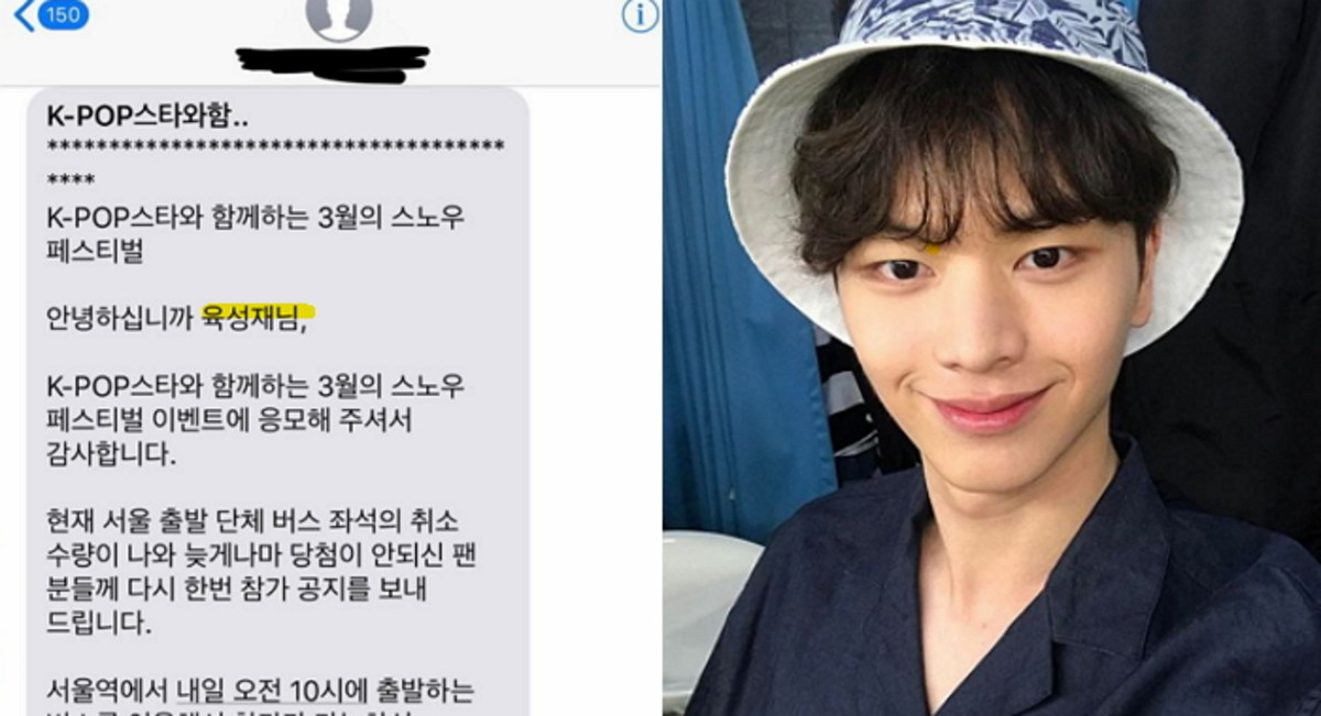 사진에는 'K-POP스타와 함께하는 3월의 스노우페스티벌' 관계자가 보낸 문자가 담겨있었다.