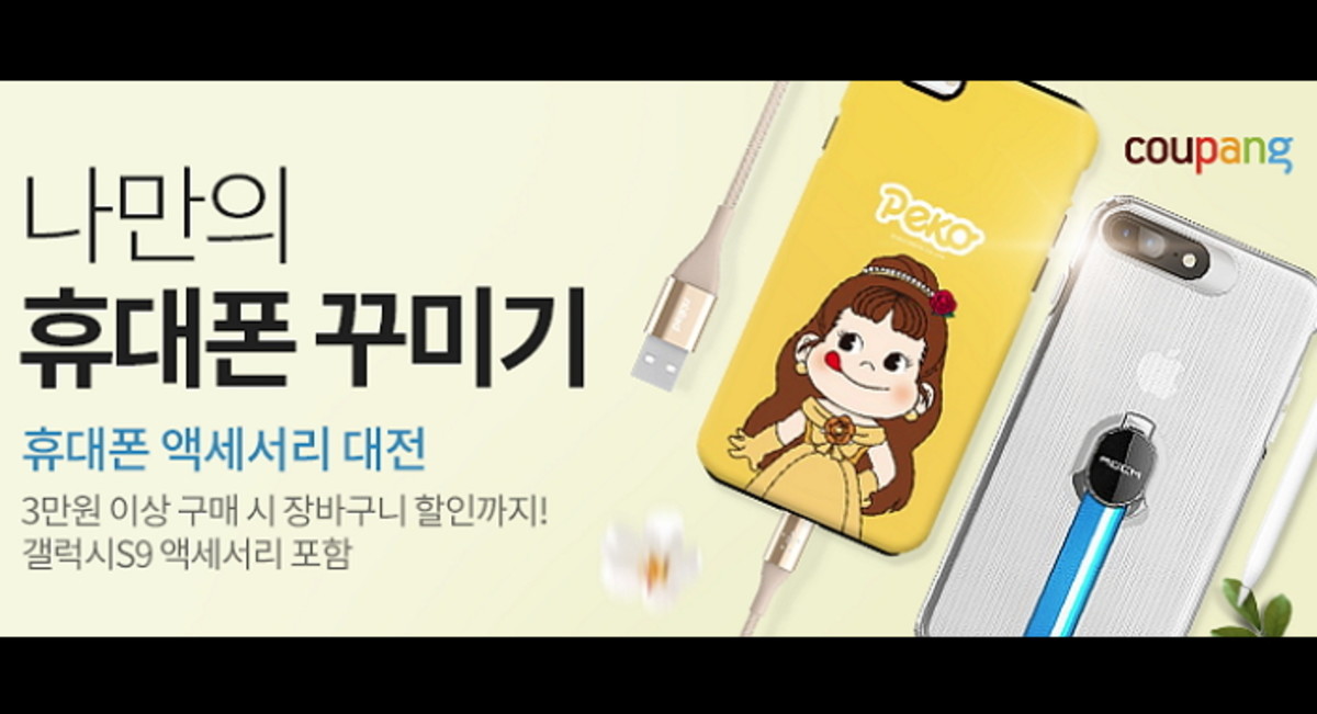 오는 29일까지 진행되는 이번 행사는 인기 캐릭터 휴대폰 케이스부터 스마트링까지 쿠팡이 선별한 총 860여개 휴대폰 액세서리를 선보인다.