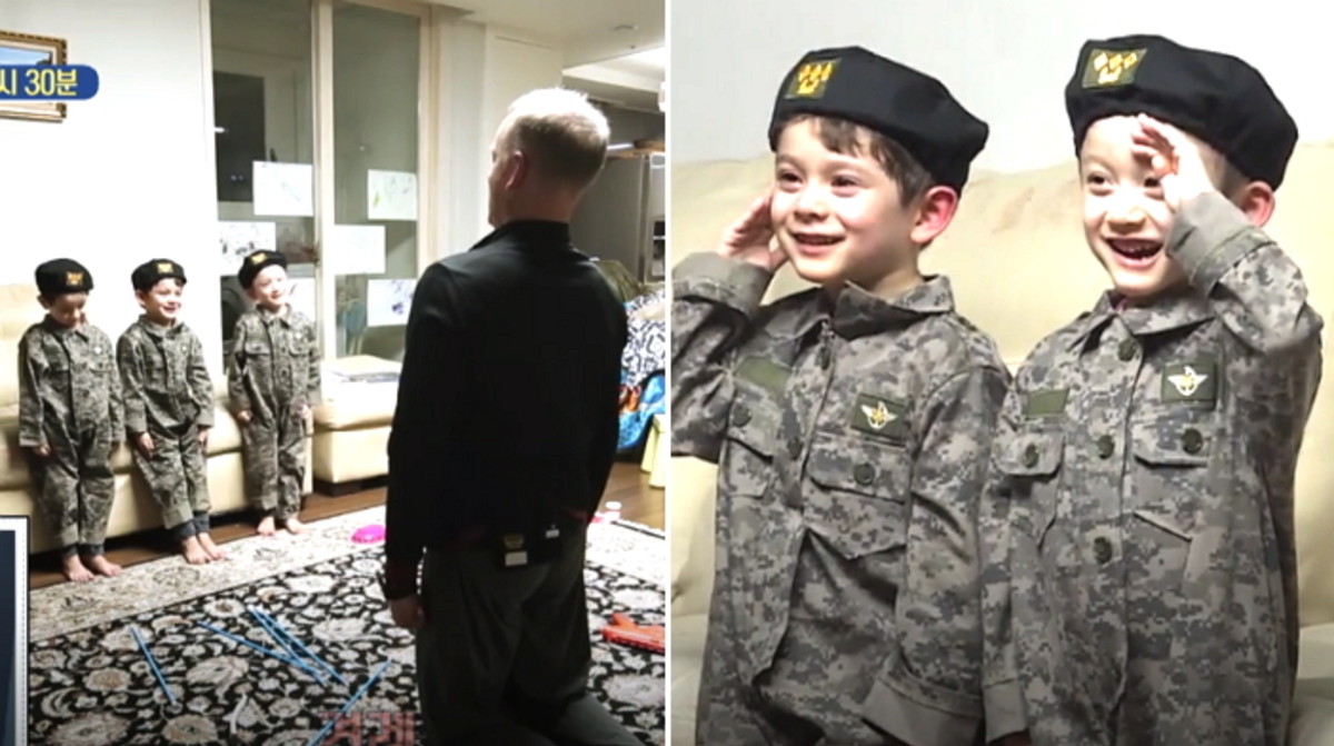 군인 아빠답게 브라이언은 아이들에게 꼭 입혀 보고 싶었던 군복을 선물로 준비한 것. 그는 한명 한명 정성 들여 군복을 입혀주며 군인의 로망을 실현했다.