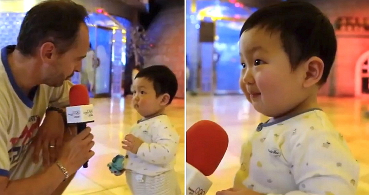 기자는 아이를 향해 프랑스어로 질문을 건네고 마이크를 들이밀었다.