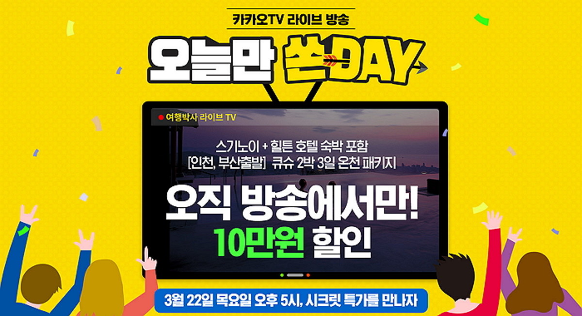 한편, 여행박사의 라이브 방송인 '오늘만 쏜데이'는 매번 다른 여행상품을 판매하는 게릴라 이벤트 방송으로, 방송 당일 여행박사 카카오톡 플러스 친구를 맺은 고객에게 알림 메시지로 안내된다.