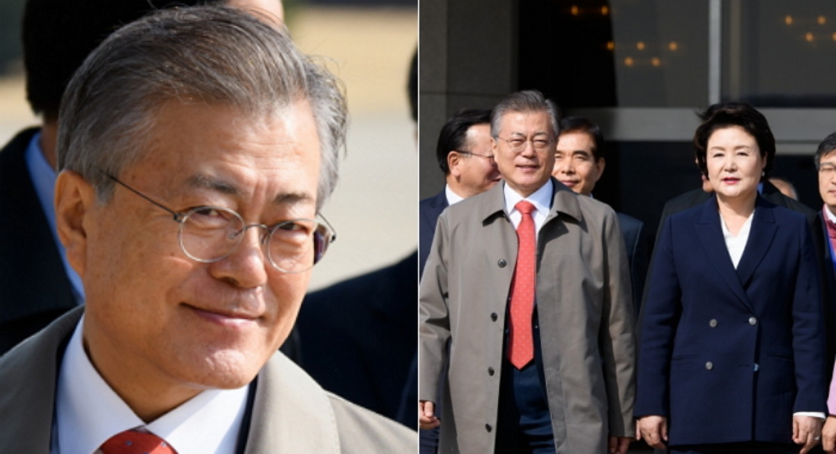 한결 따사로워진 날씨에 가벼운 옷차림을 한 문 대통령 내외는 환송인사들과 웃음으로 인사를 나눴다.