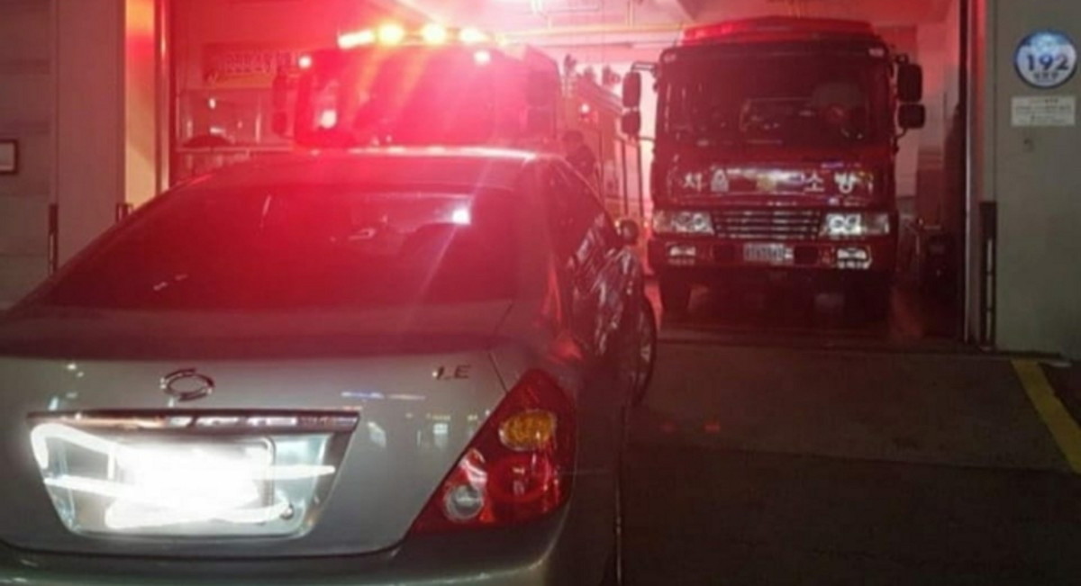 당시 외부 소방 훈련을 나가 비어있던 차고에 한 시민이 주차를 했다.