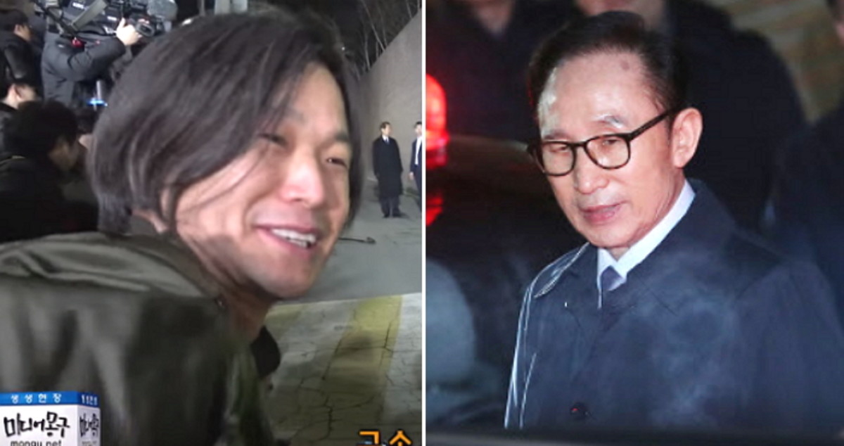 이날 이명박 전 대통령의 구속 현장에는 이명박 전 대통령의 비리를 10년간 취재해 온 주진우 기자가 모습을 보였다.