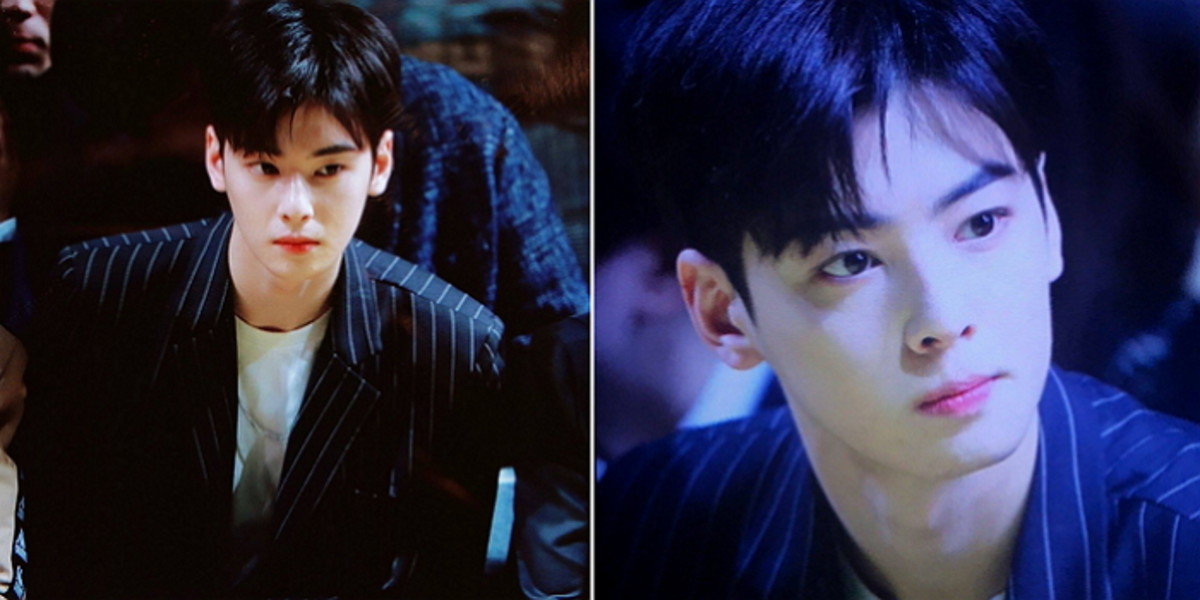 블랙 줄무늬 슈트에 화이트 라운드 티셔츠를 매치한 차은우는 깔끔하면서도 스타일리시한 매력을 뽐냈다.