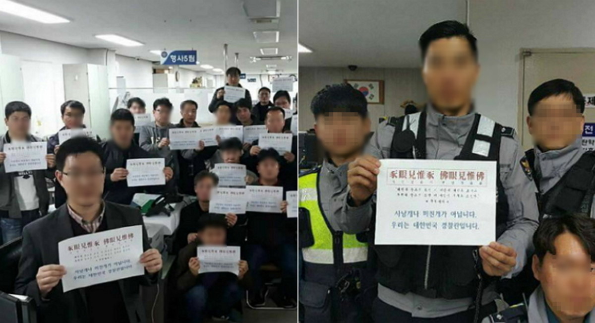 경찰은 지난 23일부터 내부망과 SNS에 '시안견유시 불안견유불(豕眼見惟豕 佛眼見惟佛)'이라는 고사성어가 적힌 피켓을 들고 찍은 사진을 올리며 시위를 시작했다.