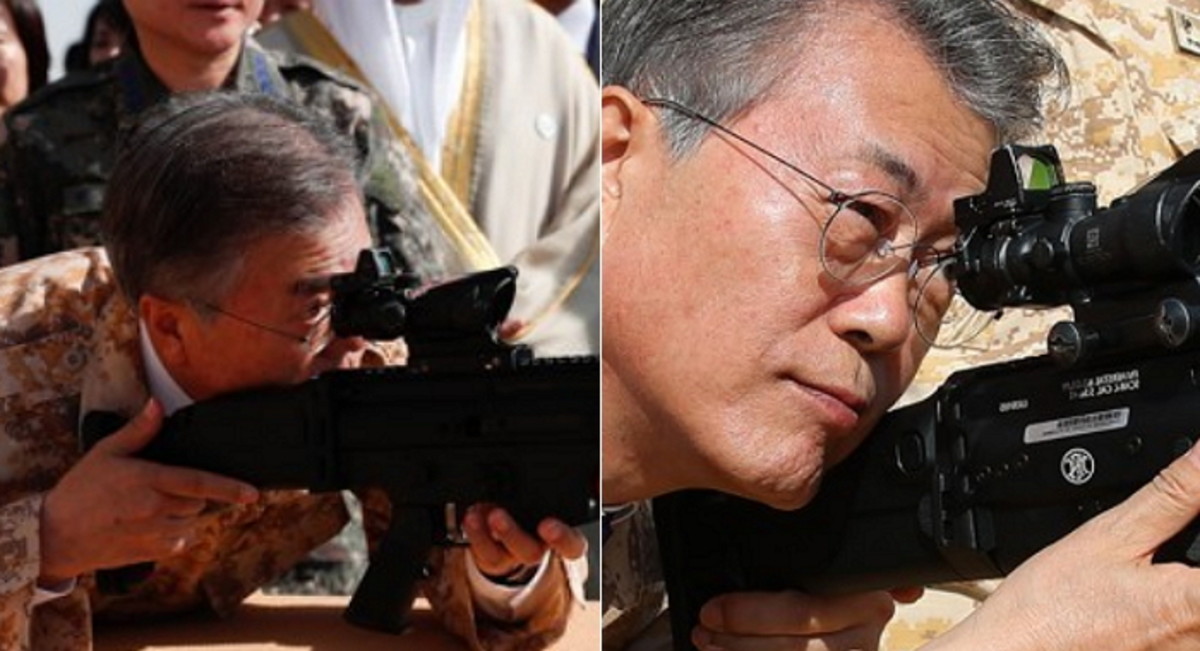 [인사이트] 최민주 기자 = 특전사 출신의 문재인 대통령의 완벽한 소총 사격 자세는 중동의 사막 한가운데서도 돋보였다.