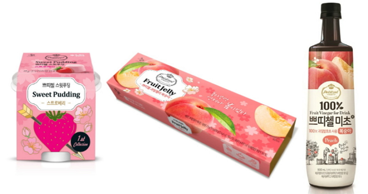 이번에 출시된 신제품은 '쁘띠첼 스윗푸딩 스트로베리', '쁘띠첼 미초 복숭아'와 '쁘띠첼 복숭아 젤리 벚꽃 한정판'이다.