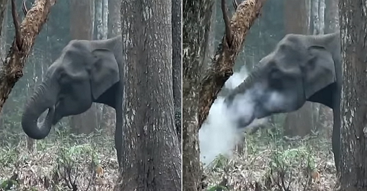 지난 27일(현지 시간) 영국 일간 가디언은 코끼리가 입을 통해 뿌연 연기를 내뿜는 모습이 담긴 영상을 공개했다.