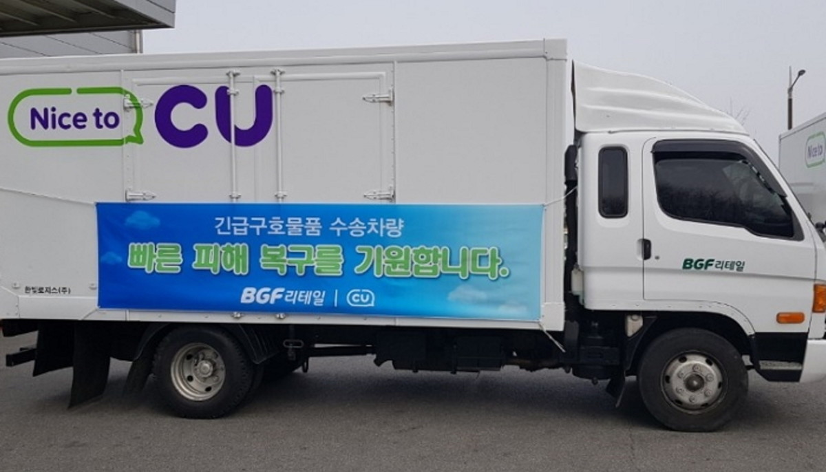 BGF리테일은 전국 20여개 물류거점과 1만 2천여 점포 네트워크를 활용해 구호물자 조달이 어려운 도서·격오지 이재민을 위한 구호물자 수송 등 긴급 구호 거점의 역할을 해오고 있다.