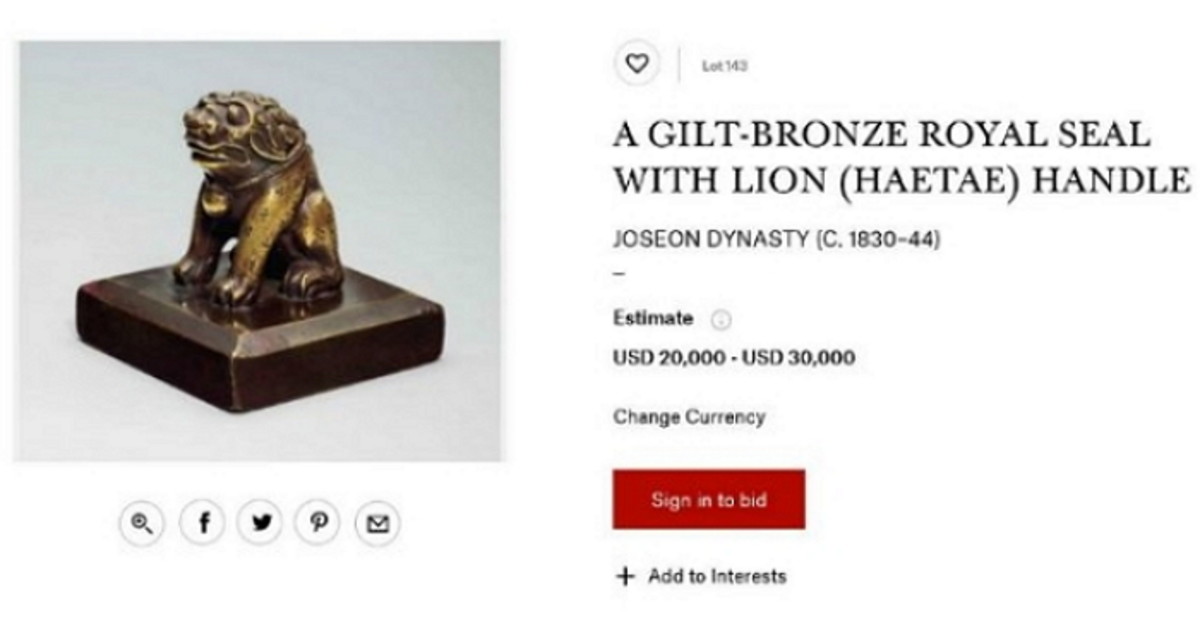 이어 "도난품이라는 정확한 근거 자료가 없으나, 일단 반출 경위를 파악한 뒤 경매 중지 요청 여부를 결정할 것"이라고 덧붙였다.