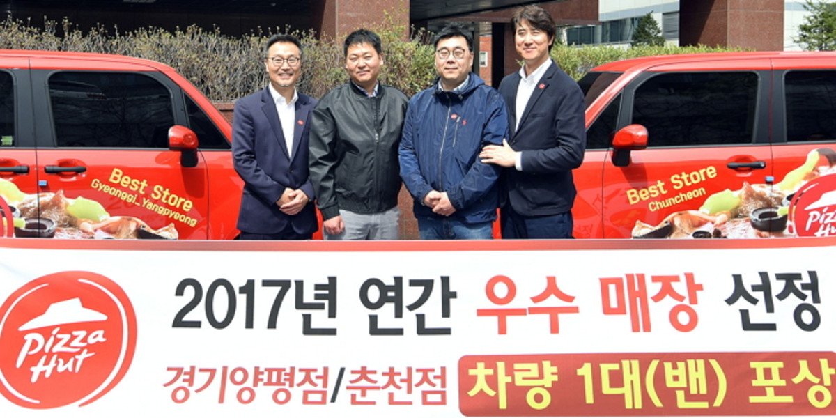 각각 고객만족도와 매출 부문에서 우수한 성과를 낸 두 매장에 한국피자헛은 명패와 함께 차량 한 대를 수여했다.