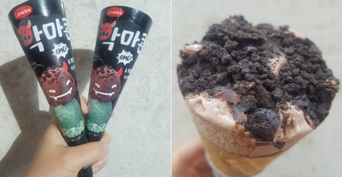 '악마콘'은 안쪽에 초코가 코팅된 바삭한 콘과자와 함께 쫀득한 초콜릿 아이스크림을 절반 정도 먹었을 때 반전 매력을 선사한다.