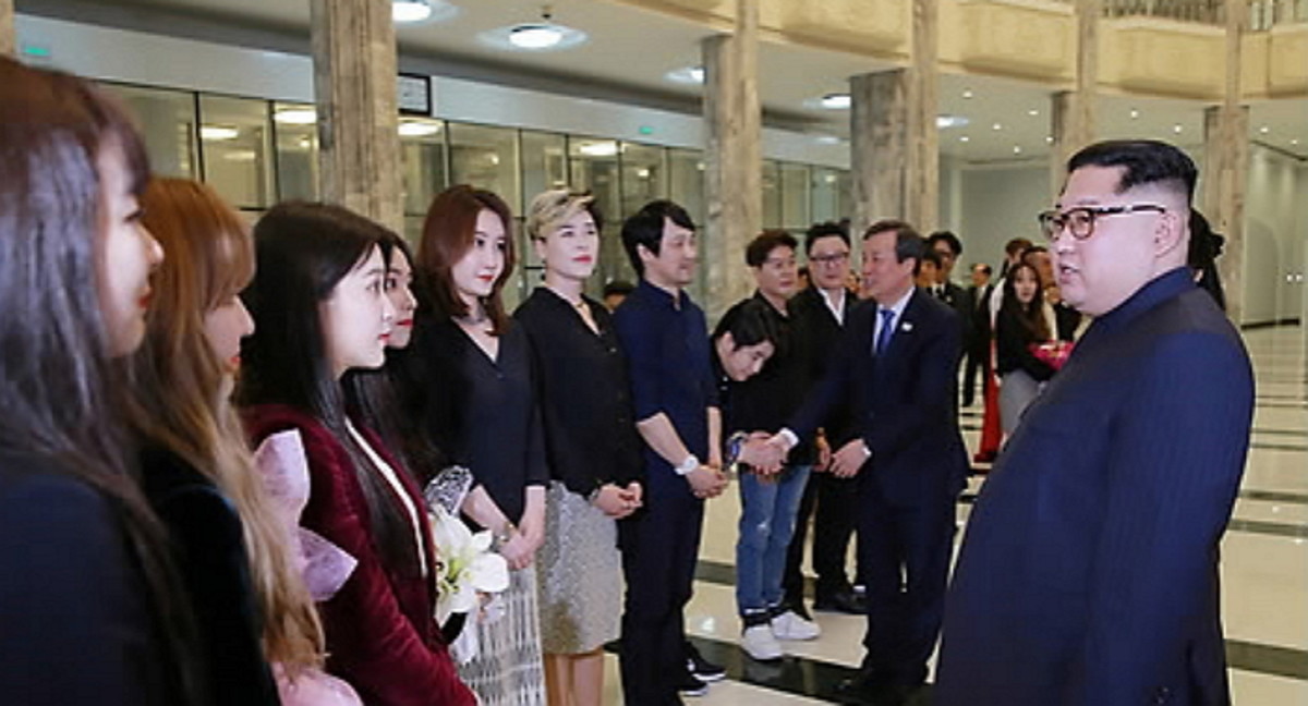 실제 북한 매체 조선중앙통신 등이 공개한 사진에서는 한 줄로 서서 김 위원장을 바라보고 있는 멤버들의 모습을 확인할 수 있다.