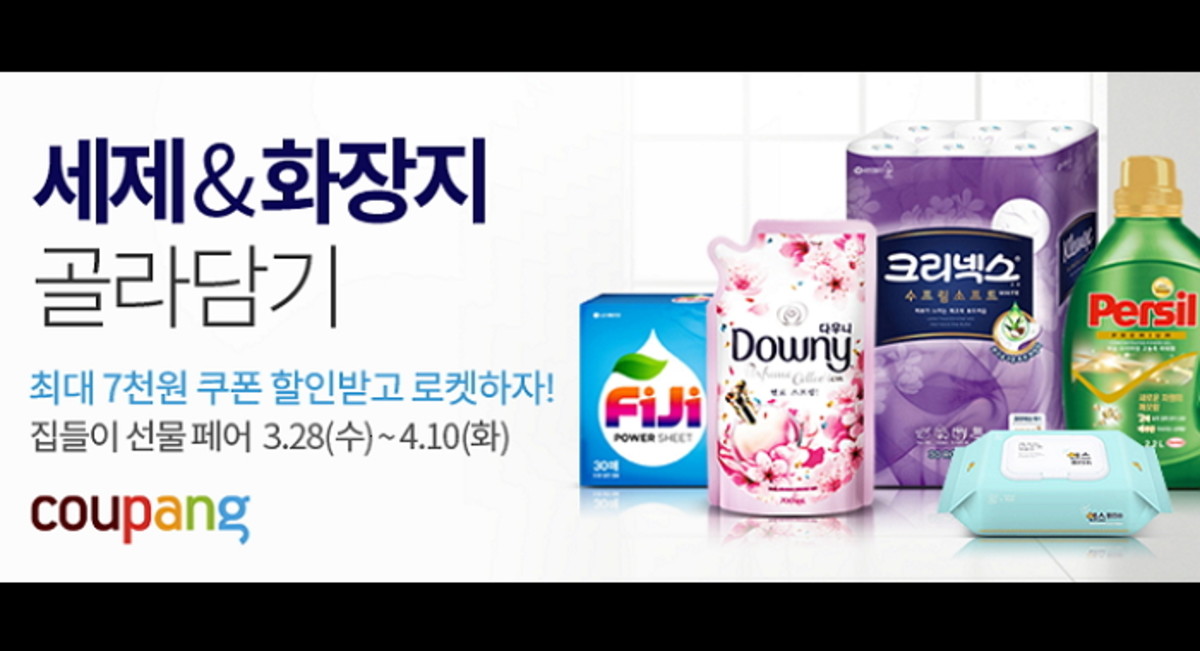 무형광 미용티슈로 먼지 날림이 적고, 민감한 피부에 사용하기 좋은 '벨라지오 소중한 내 피부 천연펄프 미용티슈 2겹(280매, 6개'을 7,400원대에, 엠보싱 포인트를 포개어 흡수력과 탄력성이 뛰어난 '잘풀리는집 다용도 안심 천연펄프 키친타올(130매, 12롤)'을 4,800원대에, 향수캡슐로 옷감을 문지르면 향기가 퍼지는 봄 신상품 '다우니 벚꽃 섬유유연제 헬로스프링(리필 700mL, 2개)'을 7,900원대에 찾아볼 수 있다.
