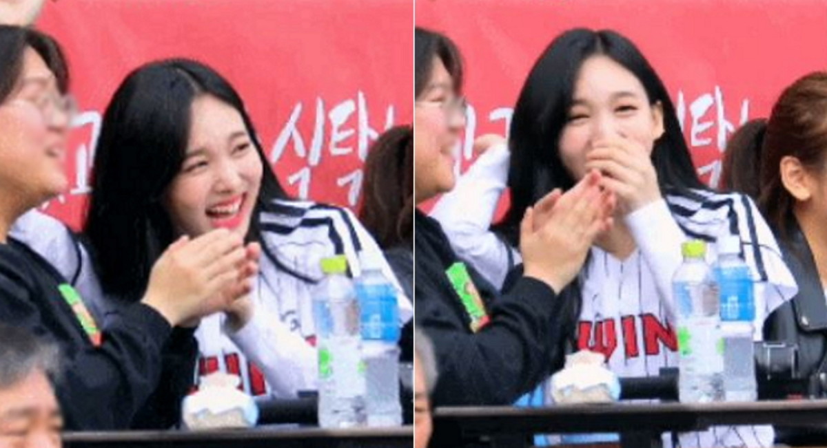 엘지 트윈스를 응원하는 나연은 엘지가 득점을 하게 된 순간 자리에서 벌떡 일어나 환호하며 오랜만에 꿀 같은 휴식을 즐겼다.