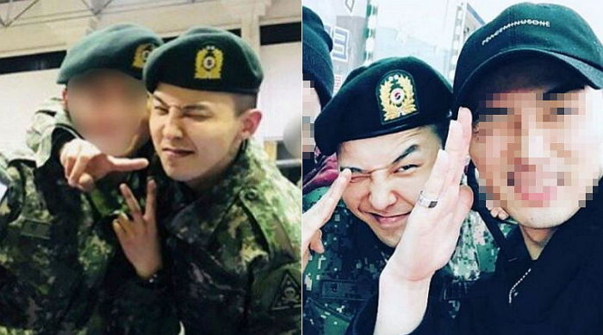 이 수료식 현장에서 지드래곤은 동고동락했던 동료들과 아쉬운 작별의 인사를 나누며 사진을 찍었다.