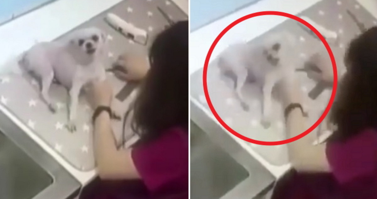 몸이 옆으로 기울여진 강아지는 이후에도 제대로 고개를 들지 못하고, 미용사는 뒤늦게 강아지를 안아주는 장면에서 영상은 끝난다.