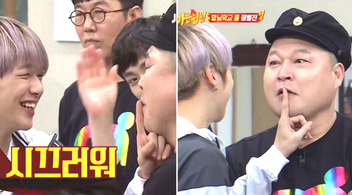 그러자 강다니엘은 "예전부터 생각했는데 호동이가 너무 시끄럽다"며 강호동에게 다가가 손가락을 입술에 가져다 댔다.