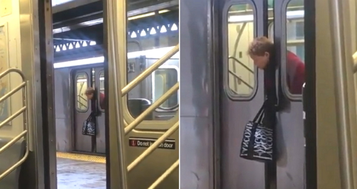 공개된 영상은 미국 뉴욕 지하철 4호선 우드론(Woodlawn) 역에서 촬영됐다. 영상 속 할머니는 지하철 문에 목이 끼인 채 어쩔 줄 모르는 모습이다.