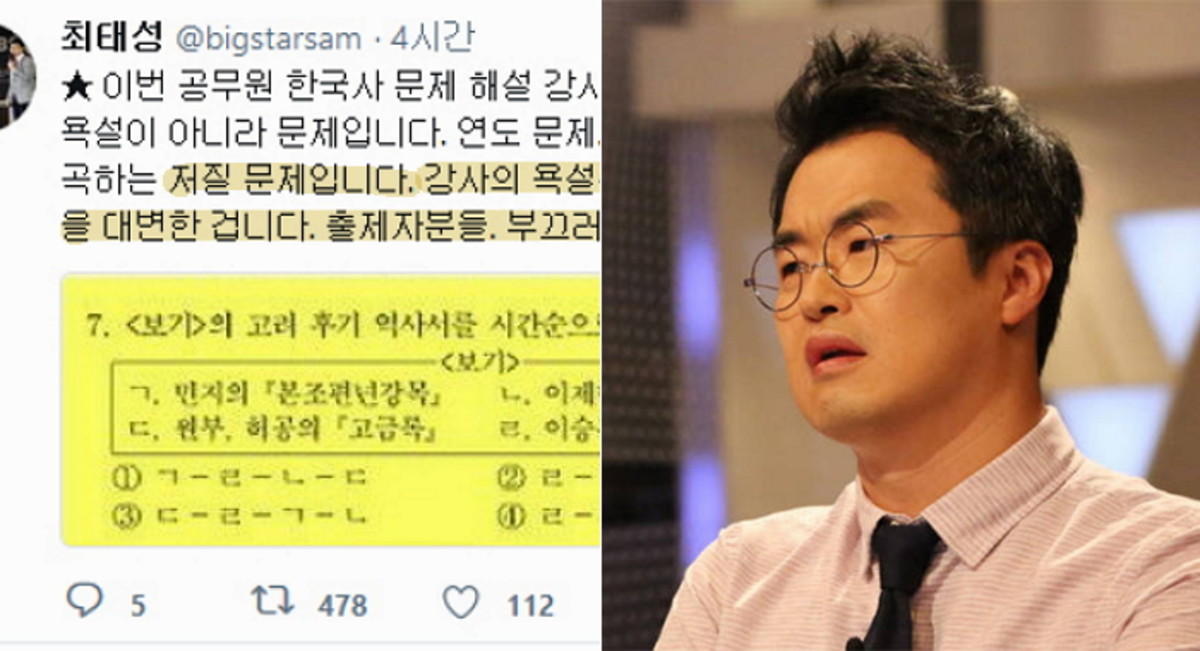 [인사이트] 최민주 기자 = 7급 지방공무원 시험 난이도에 분노를 터뜨린 한국사 강사의 언행이 구설에 오르자 이에 '큰별' 최태성 강사가 일침을 가했다.