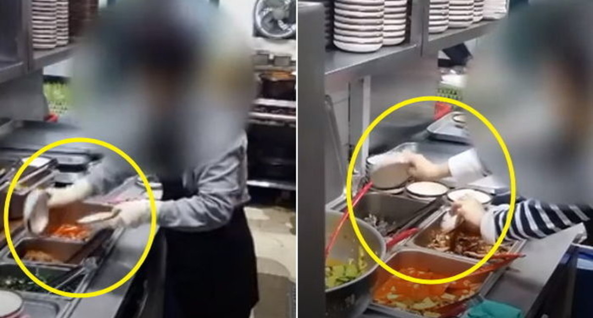 손님이 남긴 반찬을 모아 새것 같이 내보내는 것은 물론이고 먹다 남은 국물까지 재활용하는 모습이 카메라에 포착돼 공분을 샀다.