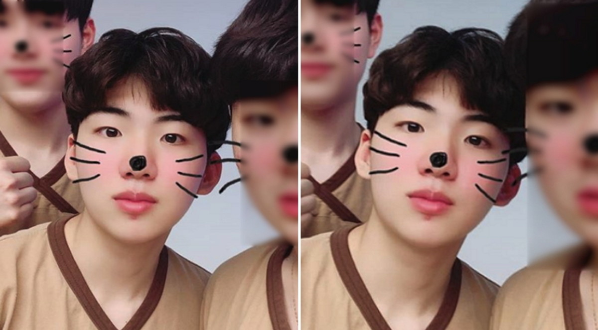 여기에 정재원은 스노우 어플 특유의 아기자기한 기능을 사용해 고양이 수염을 만들었다.