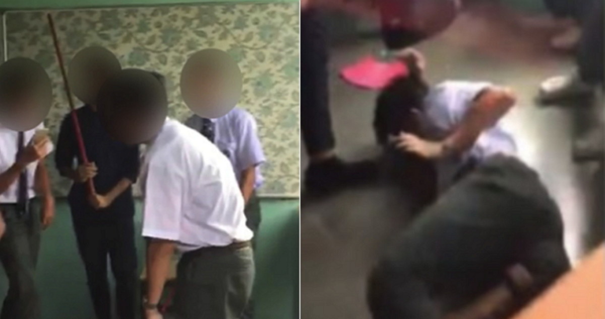 그런데 노래가 끝나자 이들은 갑자기 피해 학생을 발로 차고 빗자루로 찌르며 폭행하기 시작했다.