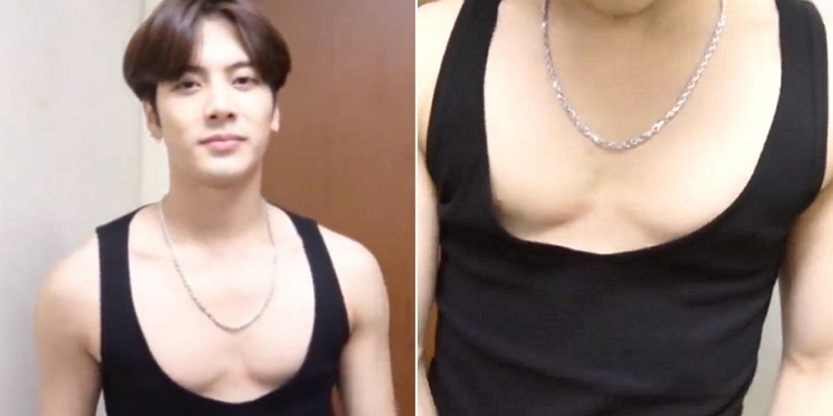 지난해 갓세븐 공식 유튜브 채널을 통해 공개된 영상 속에는 "우리 의상팀이 저한테 주신 나시(티)가 이거에요"라며 자신의 민소매티를 가리키는 잭슨의 모습이 담겼다.