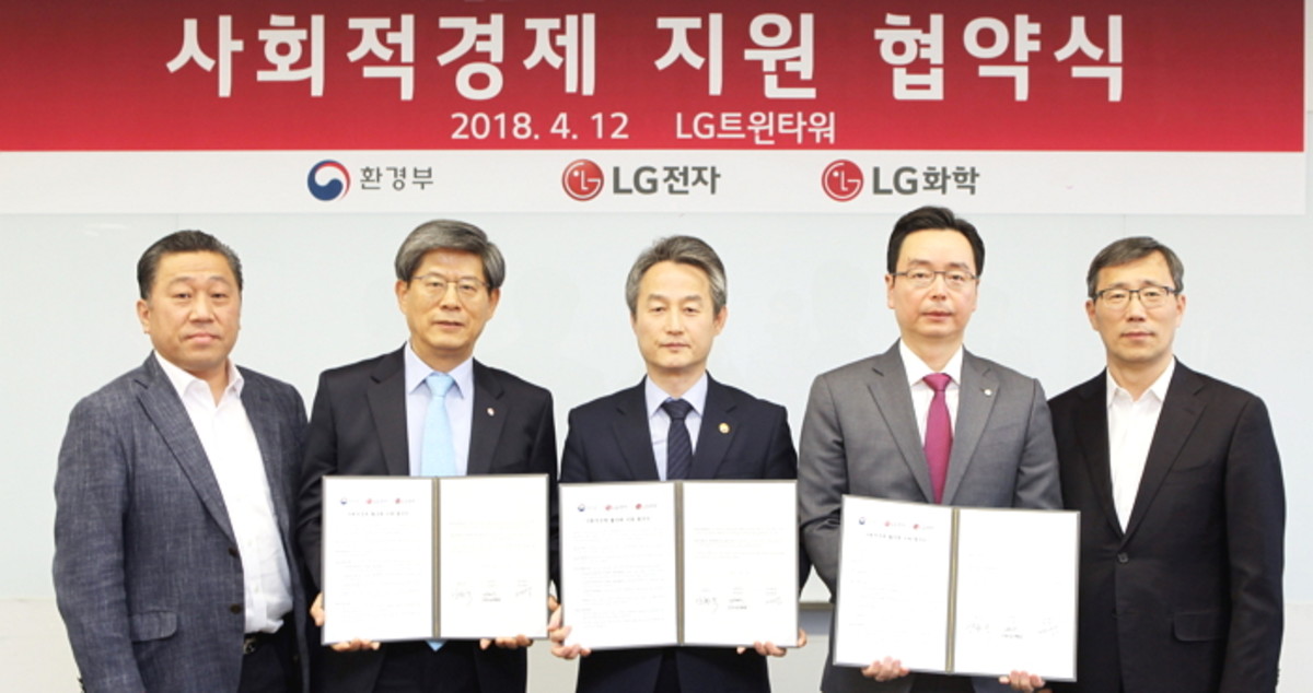 16일 LG전자는 환경부와 함께 지난 12일 서울 여의도 LG트윈타워에서 친환경 분야 사회적경제를 활성화하기 위한 협약(MOU)을 체결했다고 밝혔다.