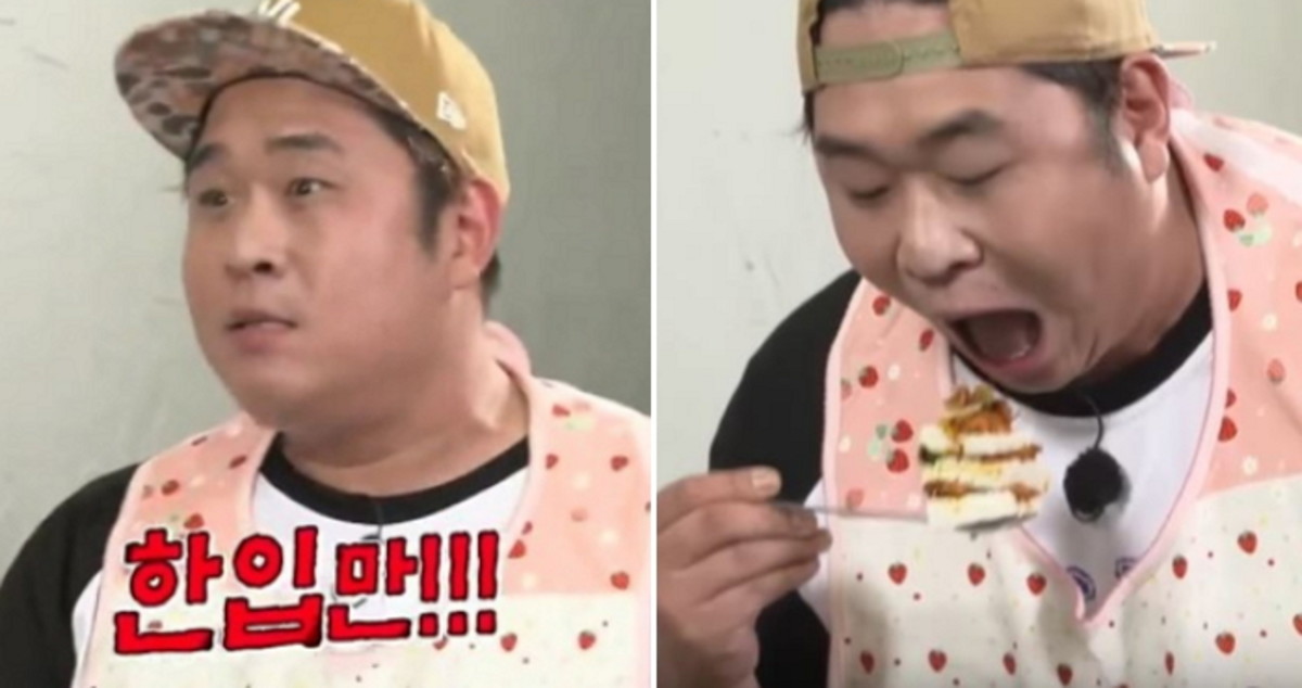 문세윤이 딱 봐도 엄청난 크기의 부산 동래파전을 한입에 쏙 집어넣었다.