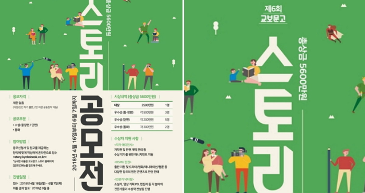 17일 교보문고는 '작가에게는 꿈을, 스토리에는 날개를'이라는 슬로건으로 '제6회 스토리공모전'을 개최한다고 밝혔다.