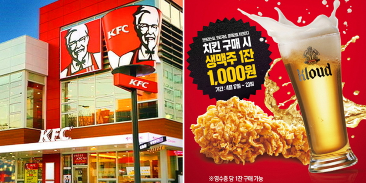 17일 KFC는 오는 23일까지 치킨 메뉴를 구매하면 생맥주를 1천원에 제공하는 'KFC 치맥' 프로모션을 진행한다고 밝혔다.