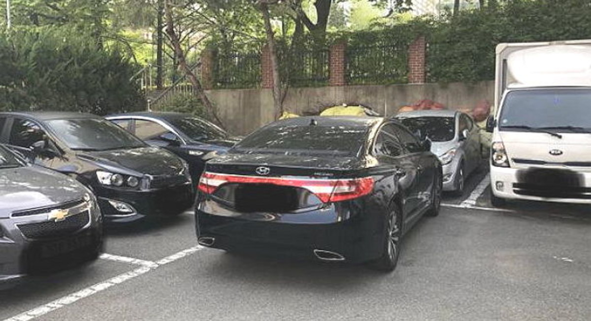 사진을 살펴보면 검은색 그랜저 차량은 다른 3대의 차량을 동시에 막고 있다. 차주가 차를 움직이기 전까지는 차량 3대 모두 꼼짝할 수 없는 상황이다.