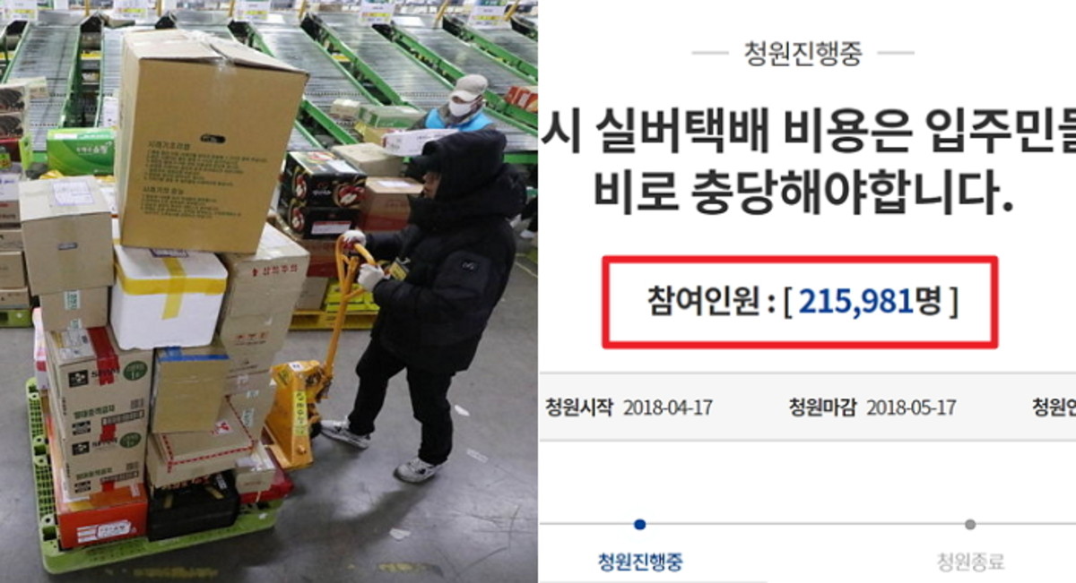 [인사이트] 최민주 기자 = 다산 신도시 실버 택배 비용을 입주민들의 관리비로 충당하라는 청와대 청원이 이틀만에 '20만명'을 넘어섰다.